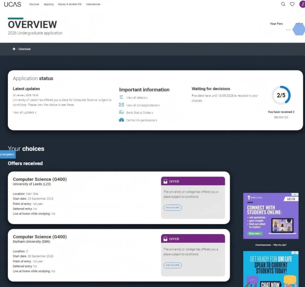 此次录取的两所院校均为英国顶尖高校,在计算机科学领域深耕多年、实力雄厚,是全球工科生的理想深造目的地。