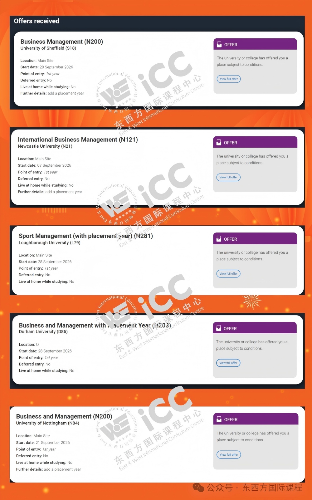 2026年申请季再添耀眼战绩!东西方教育集团IFC国际课程学子王同学,凭借扎实的学术能力与精准的申请规划,一举斩获杜伦大学、谢菲尔德大学、诺丁汉大学、纽卡斯尔大学、拉夫堡大学5所英国知名院校conditional offer。这份亮眼成果,既是王同学不懈努力的见证,更是东西方IFC国际课程“学术筑基+升学精导”培养模式的又一次实力印证。